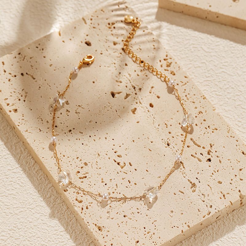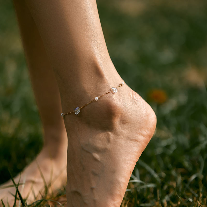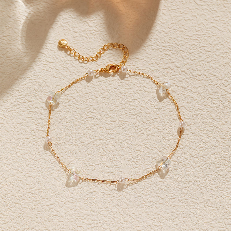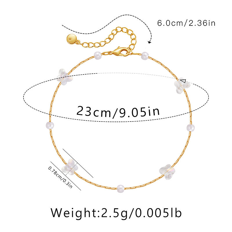 Chaîne de cheville en cuivre plaqué or 18 carats pour femme, avec zircon, papillon et perle, réglable, style bohème, bijou de pied pour les vacances