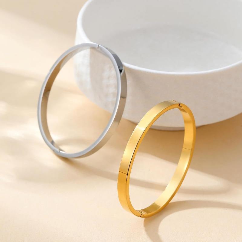 Bracelets jonc en acier inoxydable plaqué or 18 carats avec zircone cubique, bracelets jonc ovales en cristal éternel dorés pour femmes