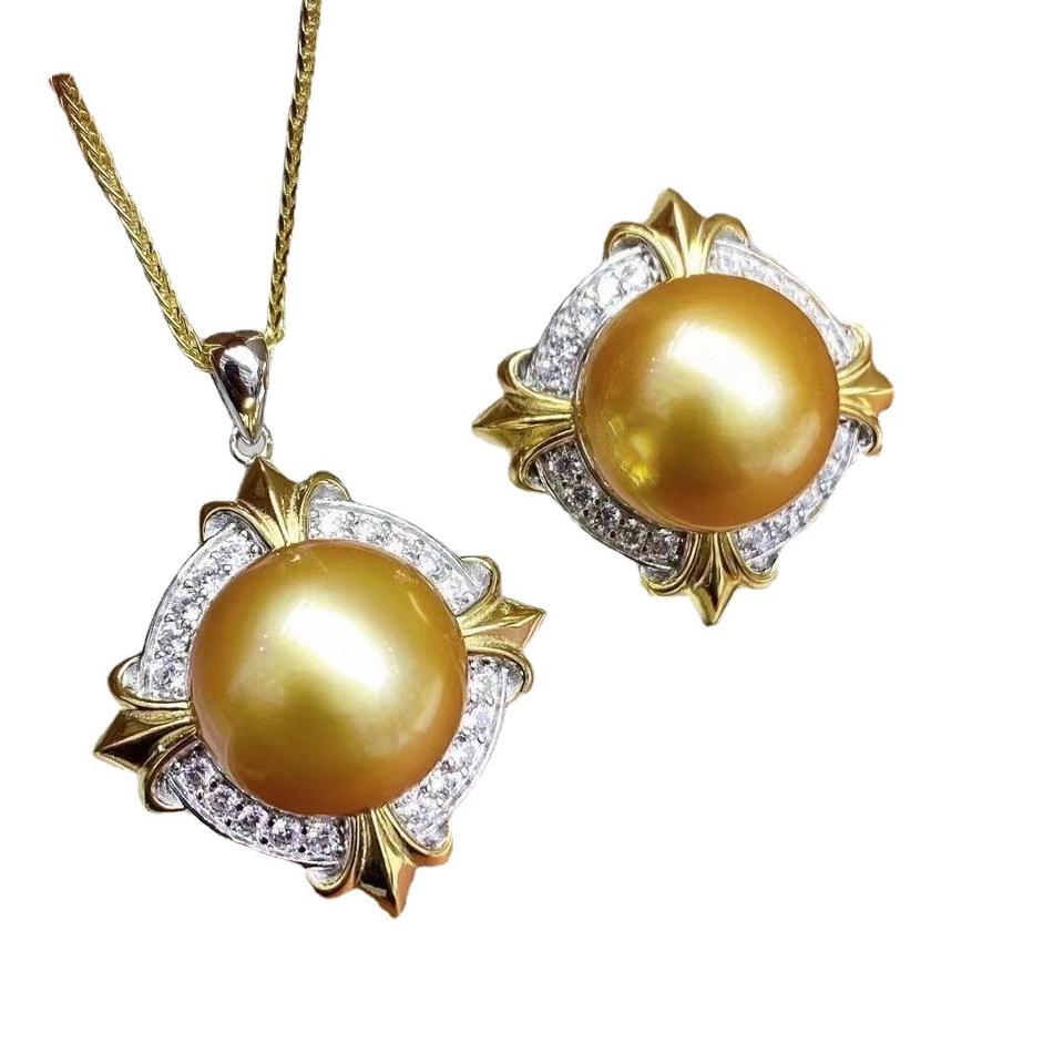 Parures de bijoux en or plaqué 18 carats, épaisses et imposantes, boucles d'oreilles dorées couleur café de 11-10 mm, pendentif de 12-11 mm, bague de 12-11 mm, chaîne en argent