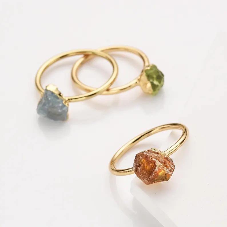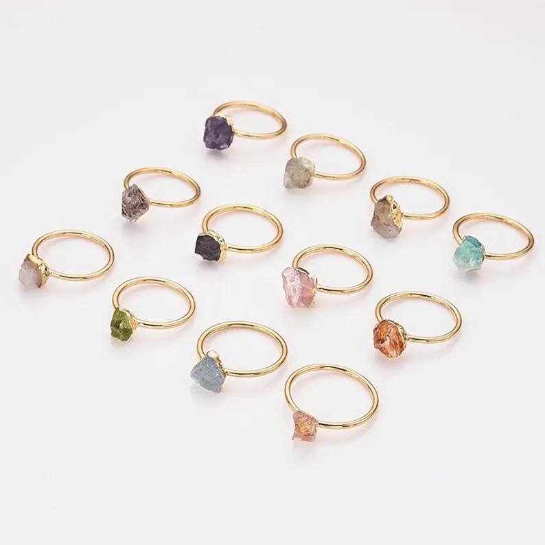 18K Plaqué Or Mix Assortiment de Pierres Brutes Bagues en Laiton Cadeau Femmes Filles En Gros Bijoux En Laiton À La Main De Mode Bagues En Laiton