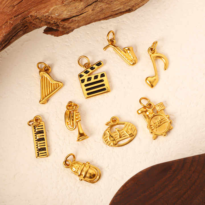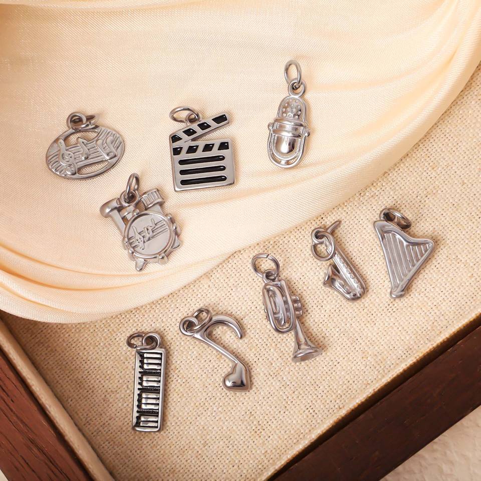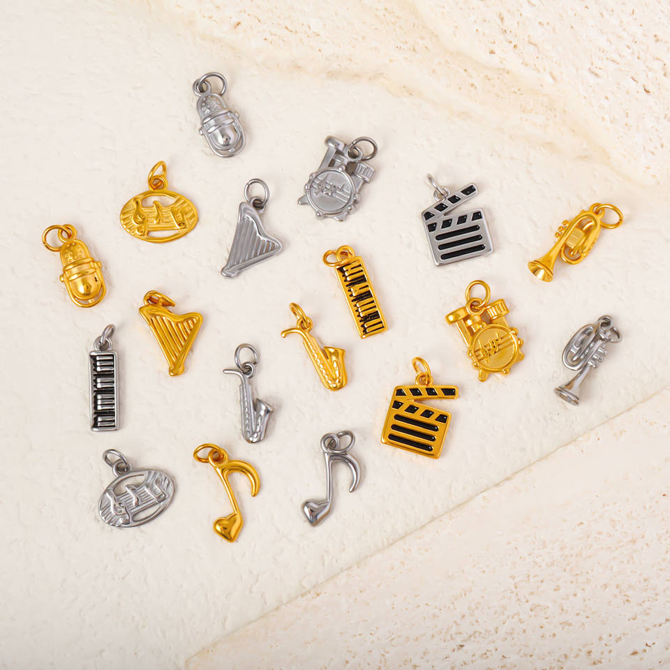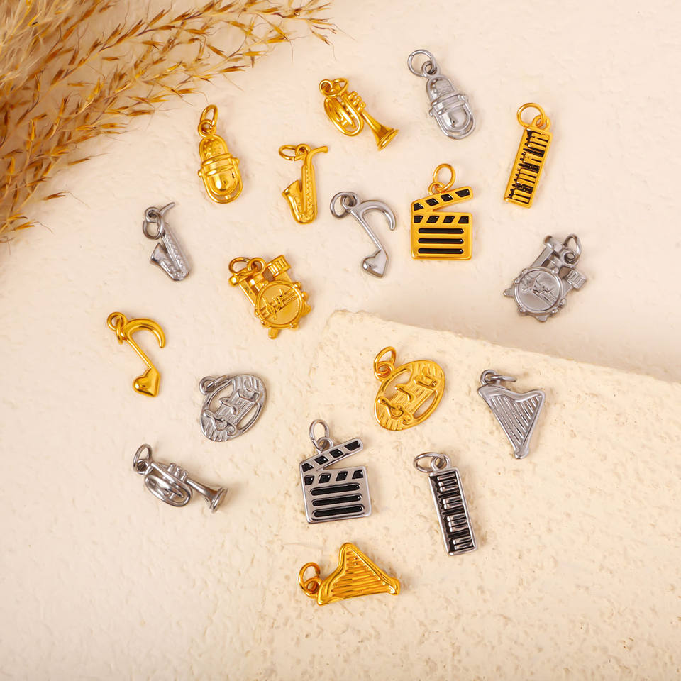 Charme d'instrument de musique plaqué or 18 carats, acier inoxydable, émail, claquette de cinéma, saxophone, pendentif musical pour la fabrication de bijoux