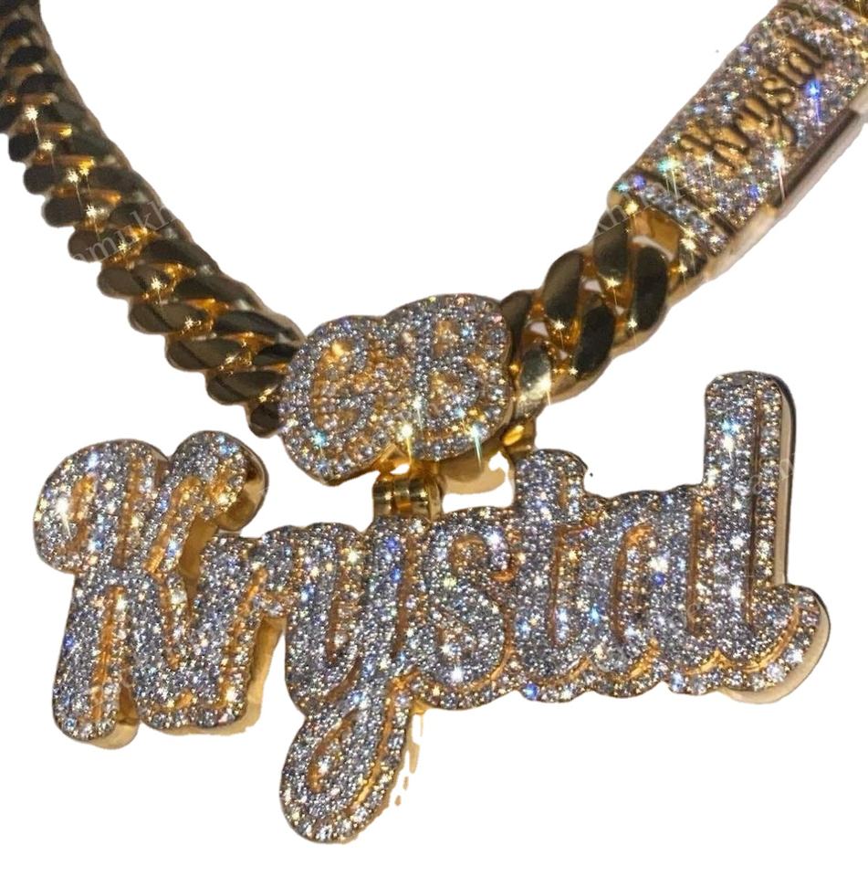 Pendentif Hip Hop en argent plaqué or 18 carats S925 deux tons glacé coupe ronde GRA certifié VVS1 Moissanite nom personnalisé pour rappeur