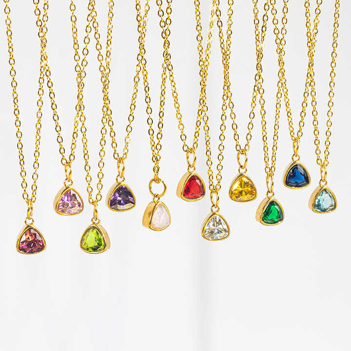 Collier pendentif pierre de naissance géométrique en acier inoxydable plaqué or 18 carats avec zircon 12 mois d'insertion d'ongles perle bijoux pour femmes cadeau