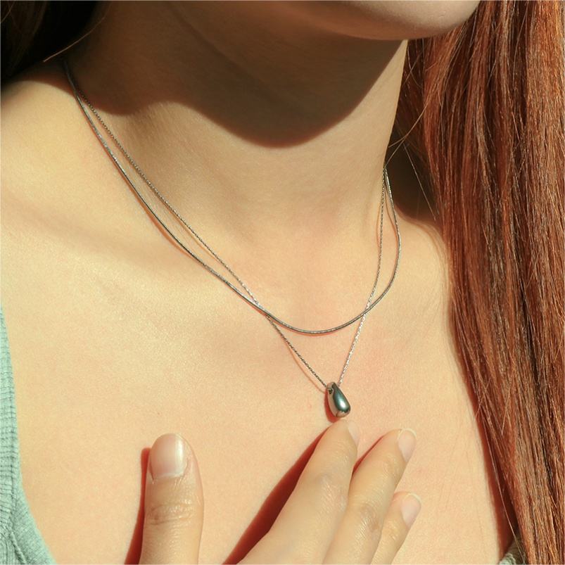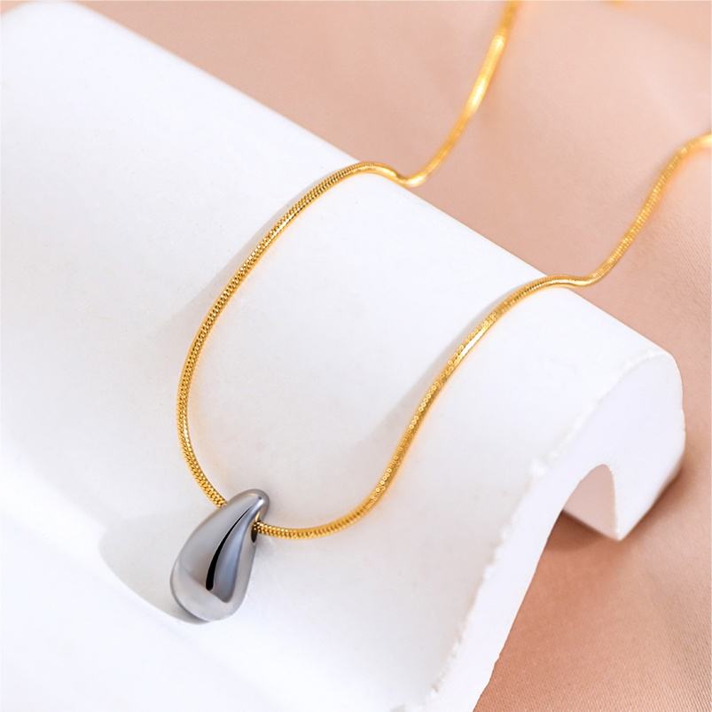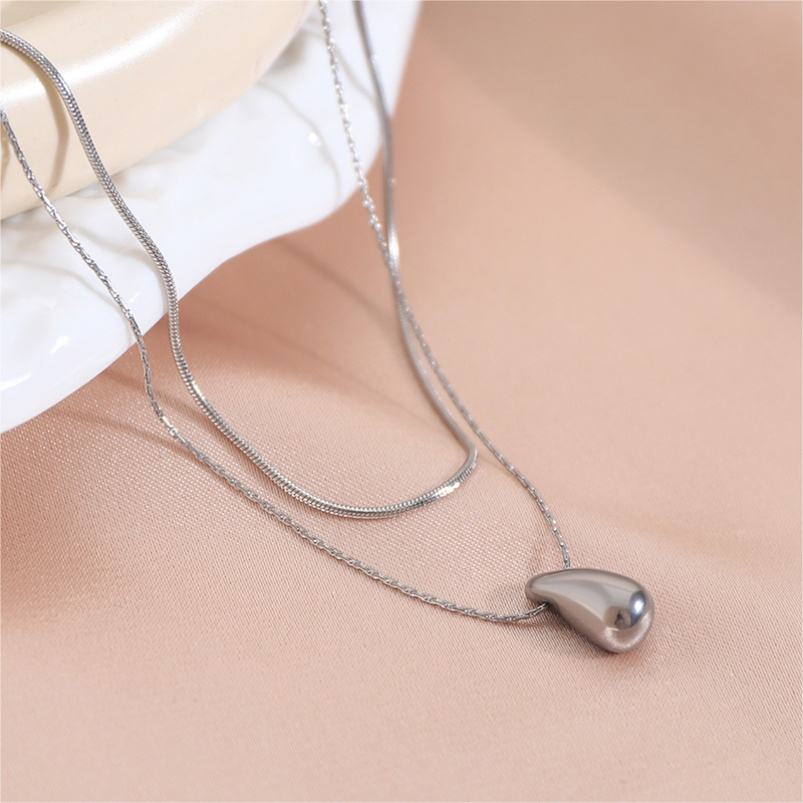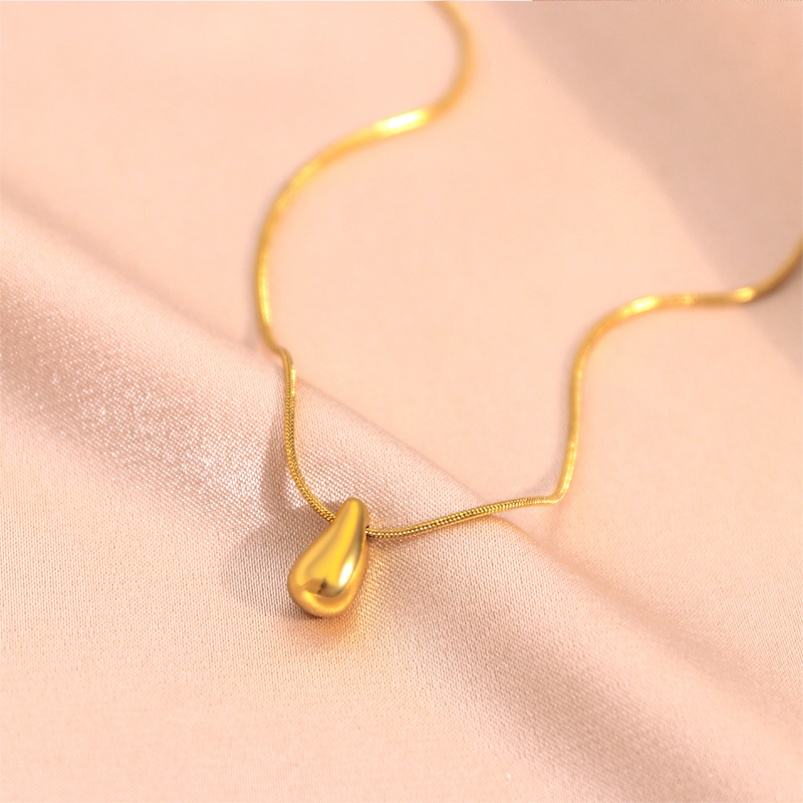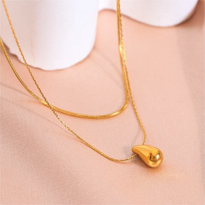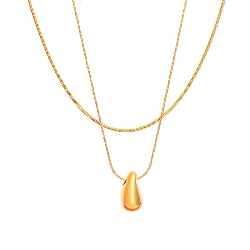 JUSTOP Collier à pendentif goutte d'eau en acier inoxydable plaqué or 18 carats, chaîne serpent, double rangs, style tendance, pour femmes et hommes, idéal pour les fêtes