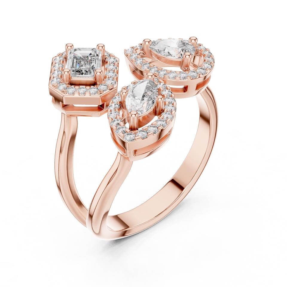 Bague de fiançailles en or 18 carats plaqué rhodium avec trois diamants naturels véritables, taille poire, marquise, émeraude, halo, certifiée IGI