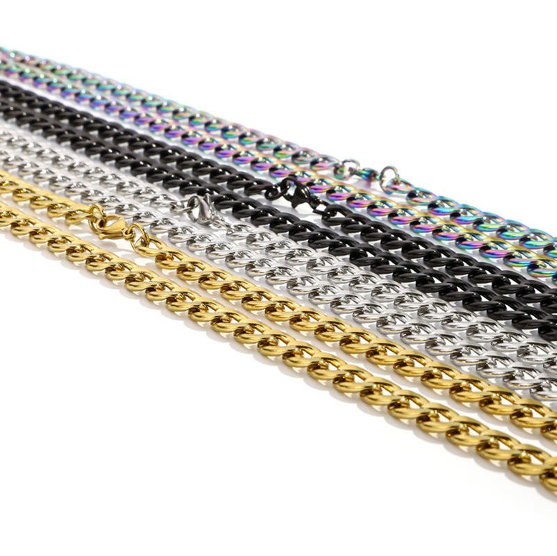 18K Gold Stainless Steel Black Curb Rope Chain Chokers Necklace Classic Fashion Hip Hop Jewelry Men Women Parties Lovers
