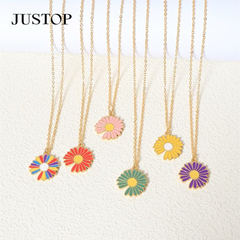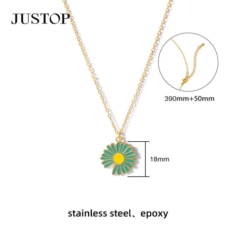 18K Gold Stainless Steel PVD Colorful Flower Charm Necklace Lobster Claw Clasp Cute Style Brass Pendant Multi-Color Bulk Fashion