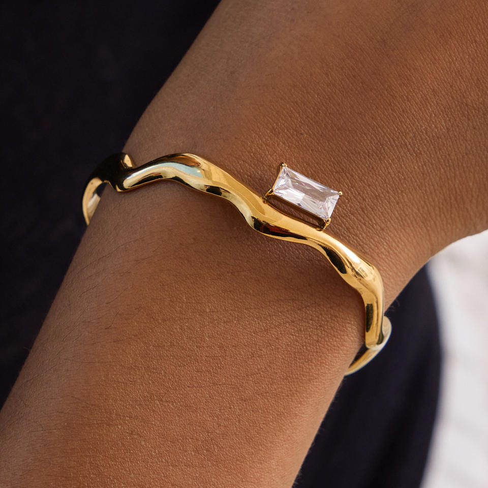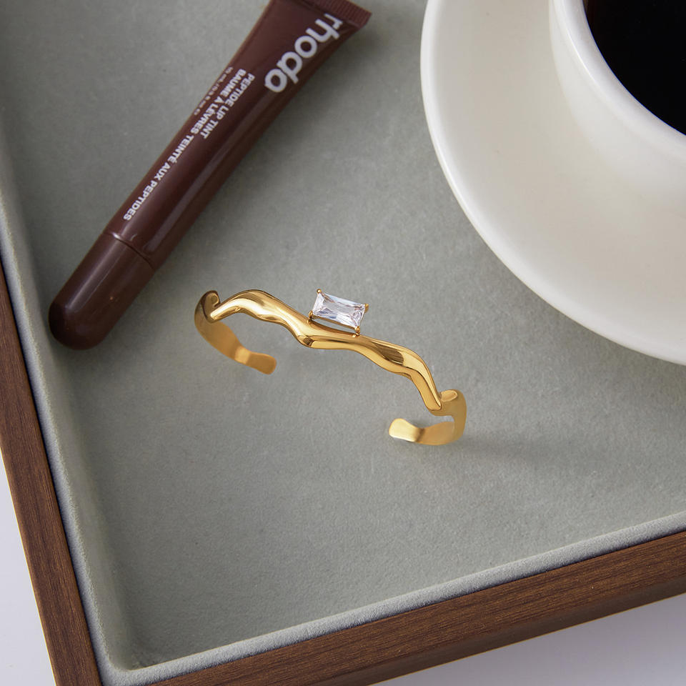 Bracelet ouvert en or 18 carats avec zircon blanc carré serti à griffes, bijou unisexe, cadeau