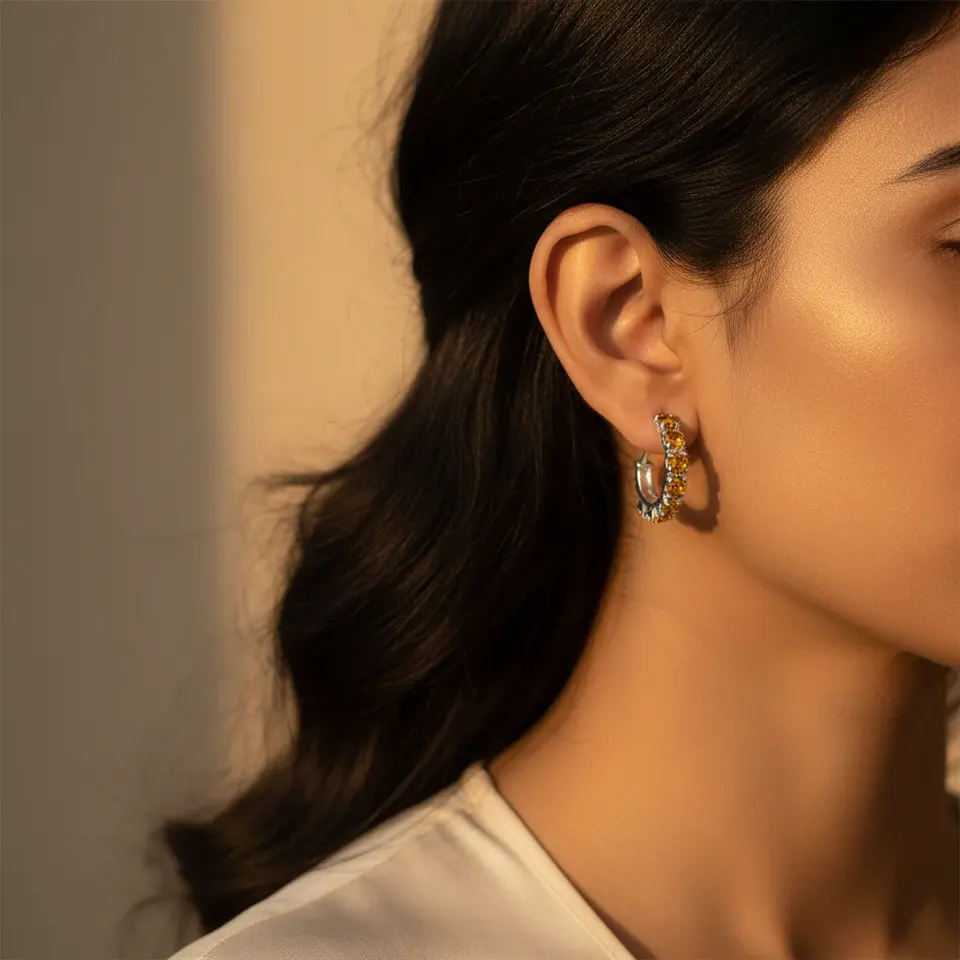 18K Gold and 925 Silver Citrine Hoop Earrings for Women Drop Pendant Jewelry with Gold Plating for Parties