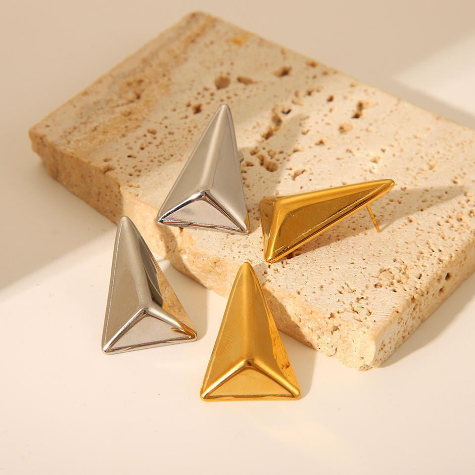 Boucles d'oreilles triangulaires géométriques en acier inoxydable plaqué or PVD 18 carats clous minimalistes anti-ternissement pour femmes Style tendance pour cadeau