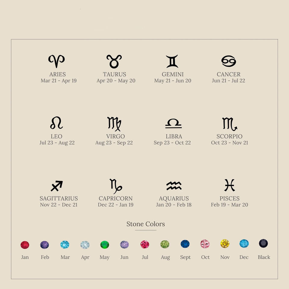 Or véritable 18K plaqué PVD titane 5A Zircon 12 Constellations Horoscope collier de pierre de naissance en acier inoxydable collier signe du zodiaque