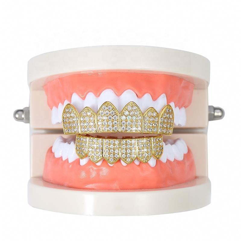 18K véritable placage à l'or en laiton avec bling zircon hip hop crocs grillz