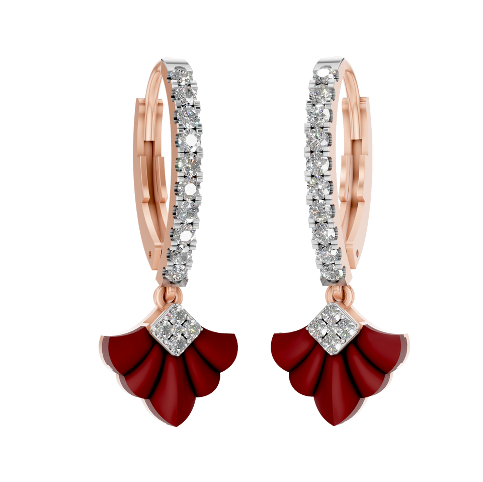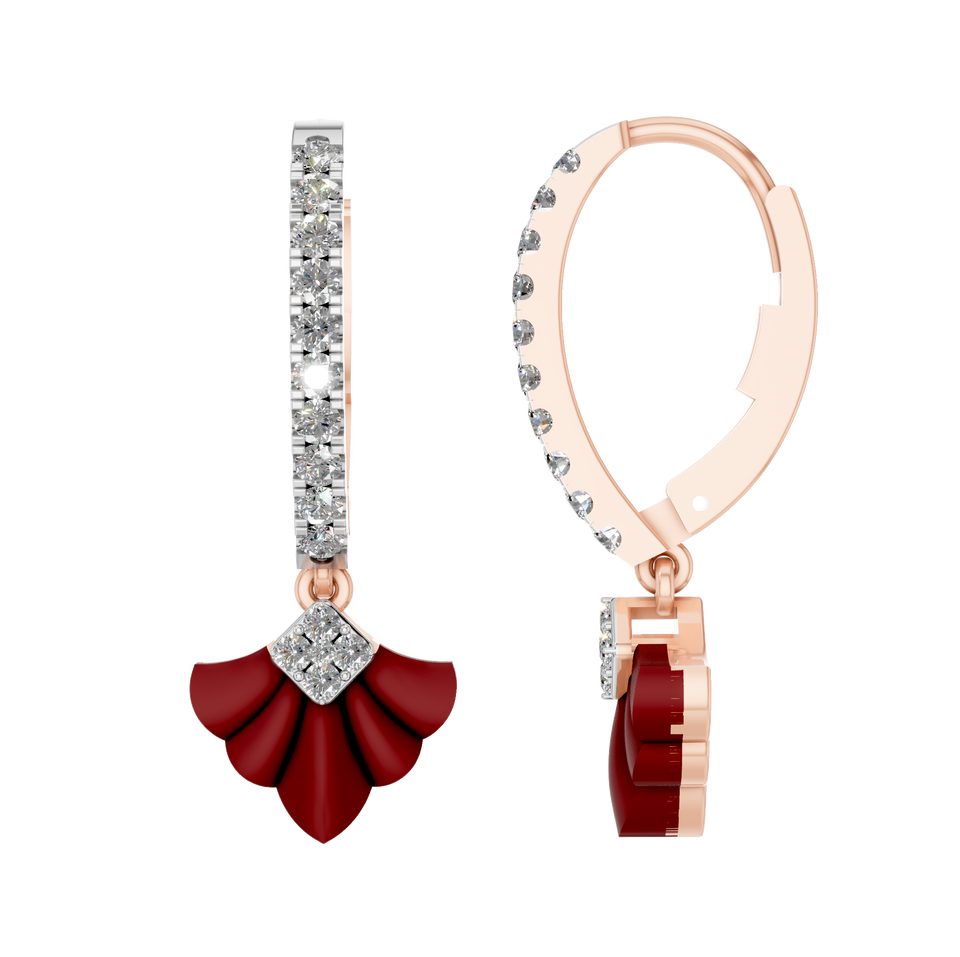 Style:Boucles d'oreilles pendantes en diamant et pierre sculptée en éventail rouge
