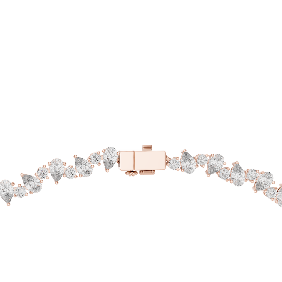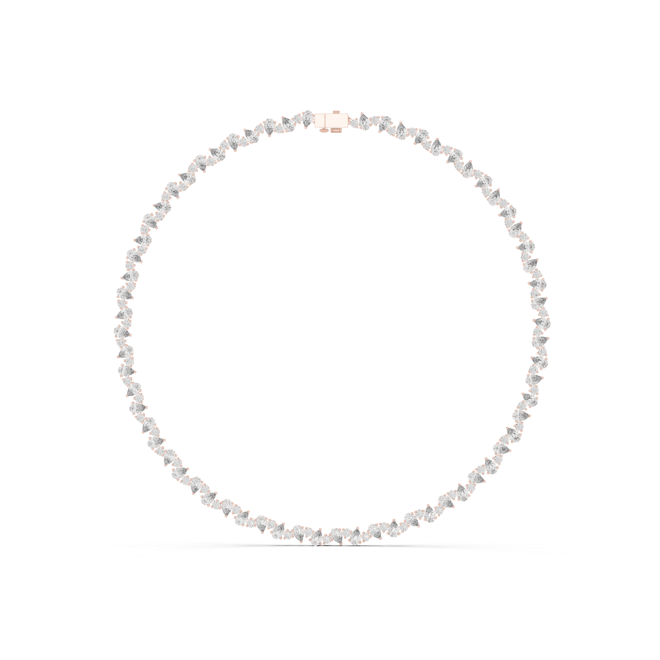 Collier tennis en or rose 18 carats avec diamants de laboratoire, design pétales de fleurs et pétales royaux à taille poire et taille ronde - Bijoux de luxe pour femme