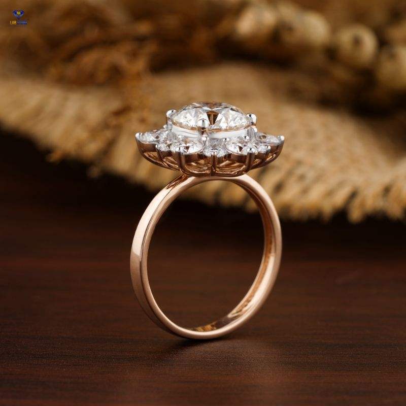 Bague en or rose 18 carats avec pierre de laboratoire 2.99 TDW pour fiançailles ou mariage Bijoux en or 14 carats