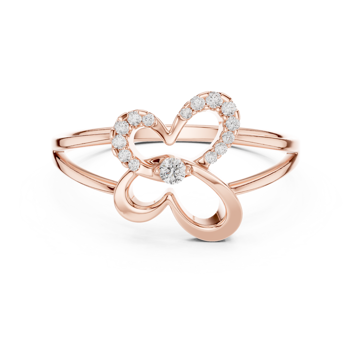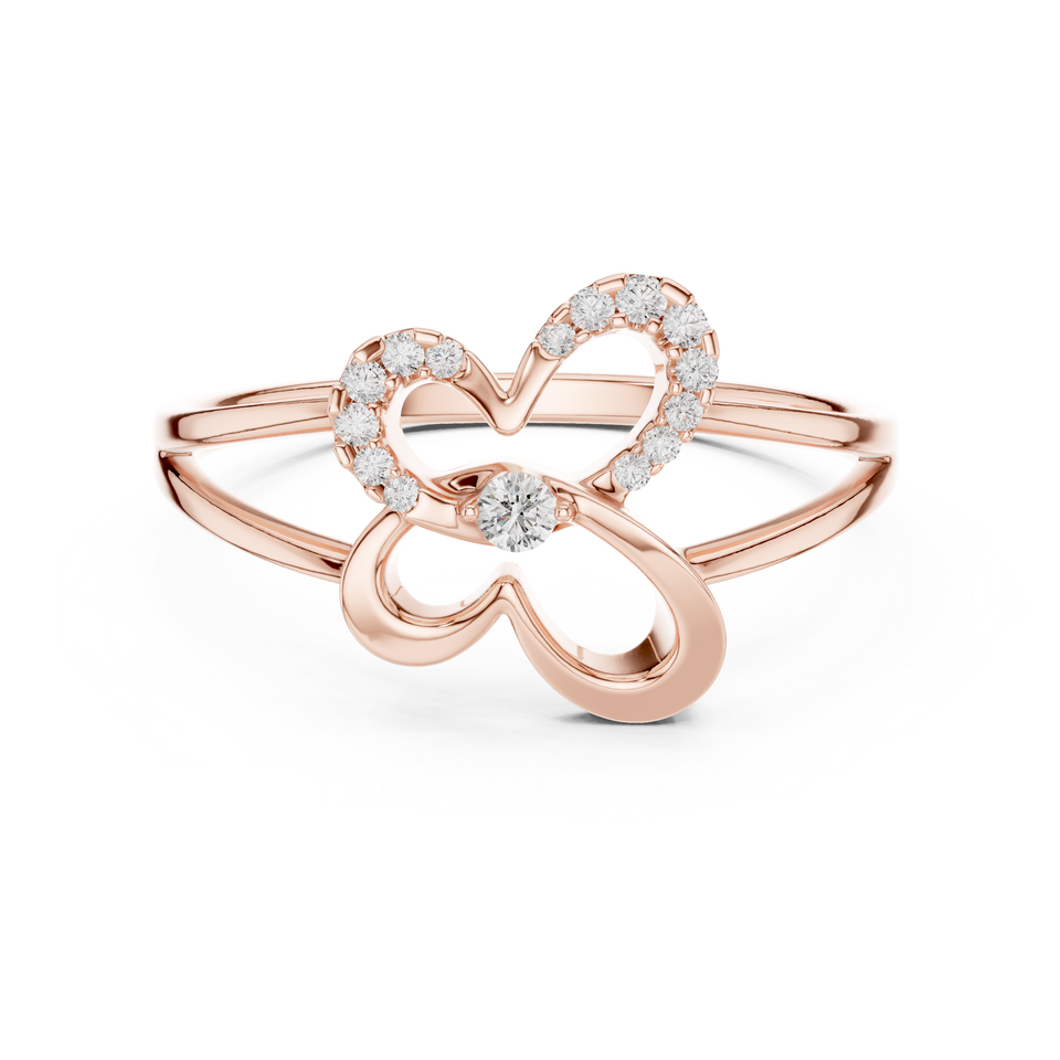 Bague Cœur Papillon en Or Rose 18 carats avec Diamant de Laboratoire Taille Ronde Moins de 1 Carat, Or Blanc et Jaune, Luxe pour Femme