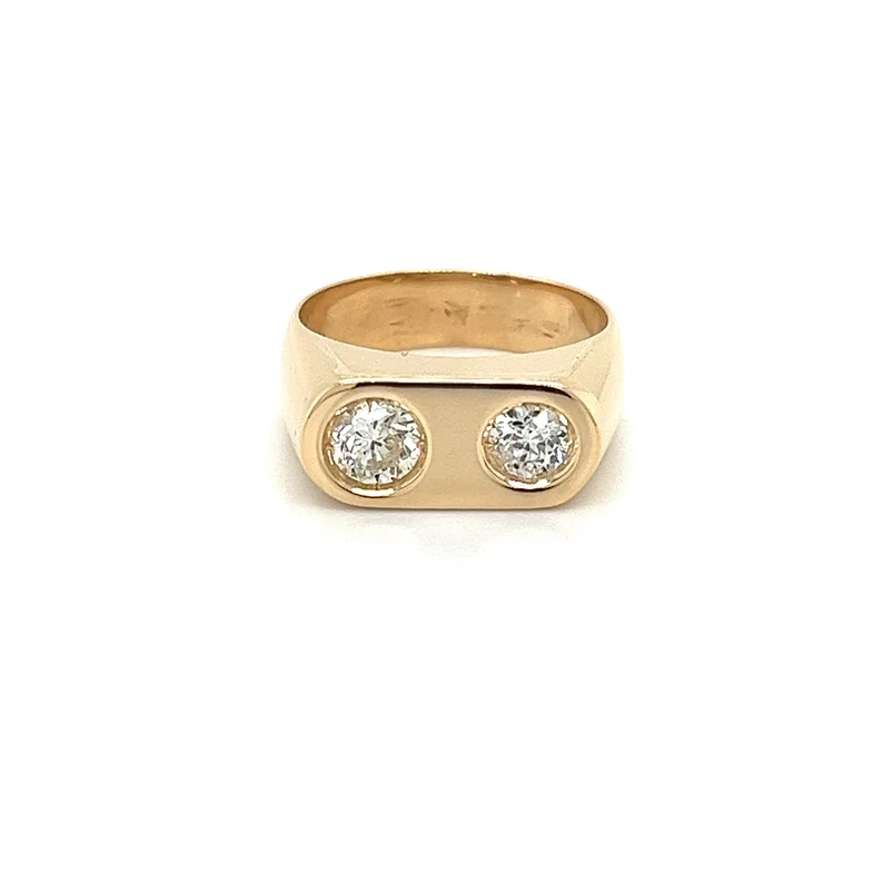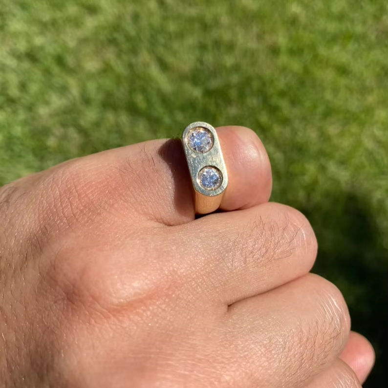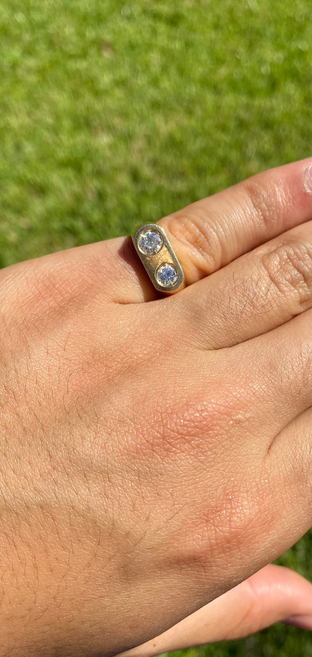 Bague horizontale en or massif 18 carats avec double diamant naturel bijoux de mode unisexe avec diamant véritable taille ronde créé en laboratoire