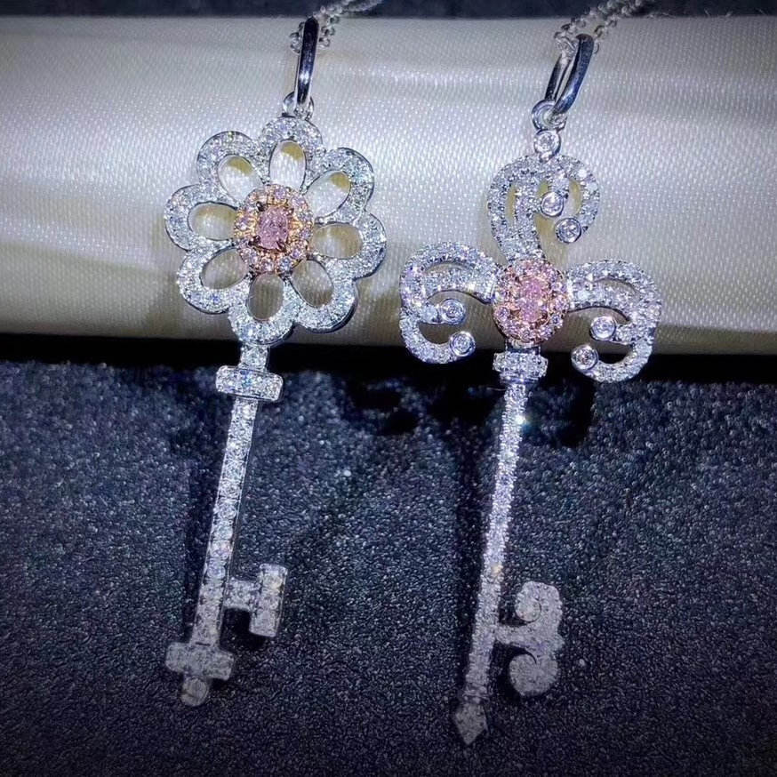 Pendentif de collier clé en or massif 18K avec diamant véritable