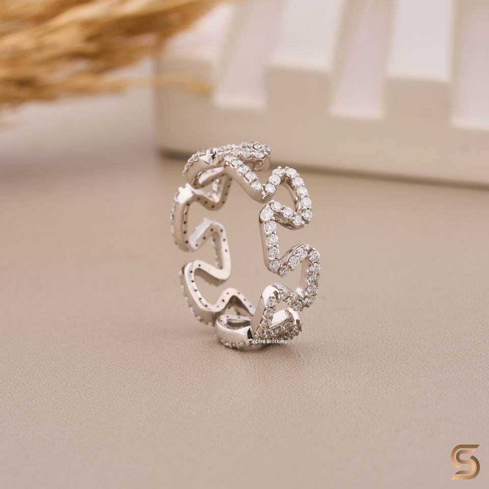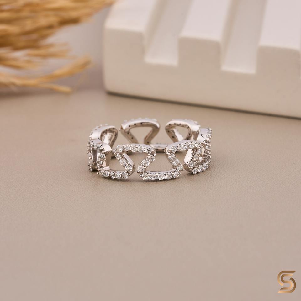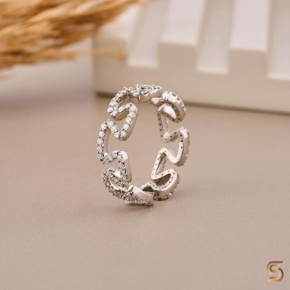 Bague en or blanc massif 18 carats avec diamant de laboratoire, motif vague en zigzag, bague de créateur pour femme