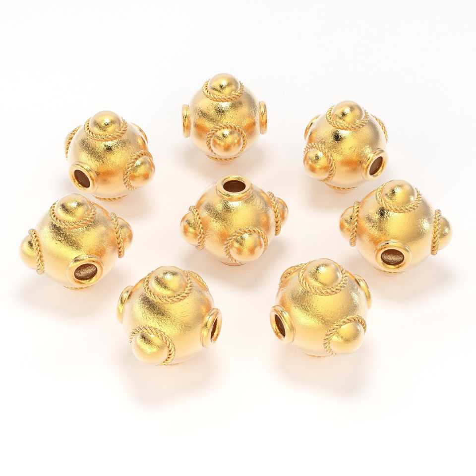 Perles d'espacement fantaisie en or jaune massif 18 carats, 7,5 mm, paire, pour la fabrication de bijoux