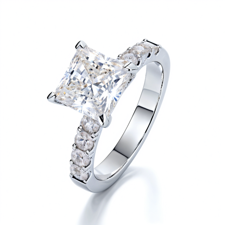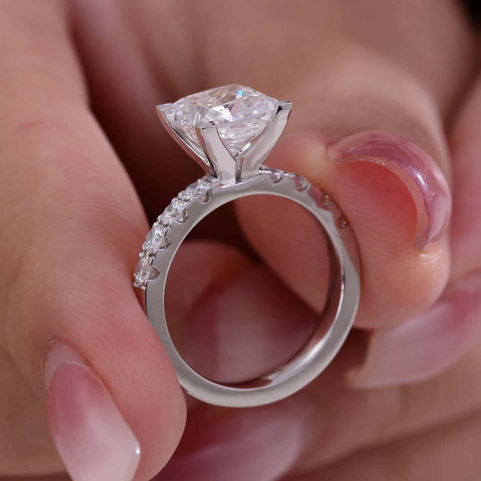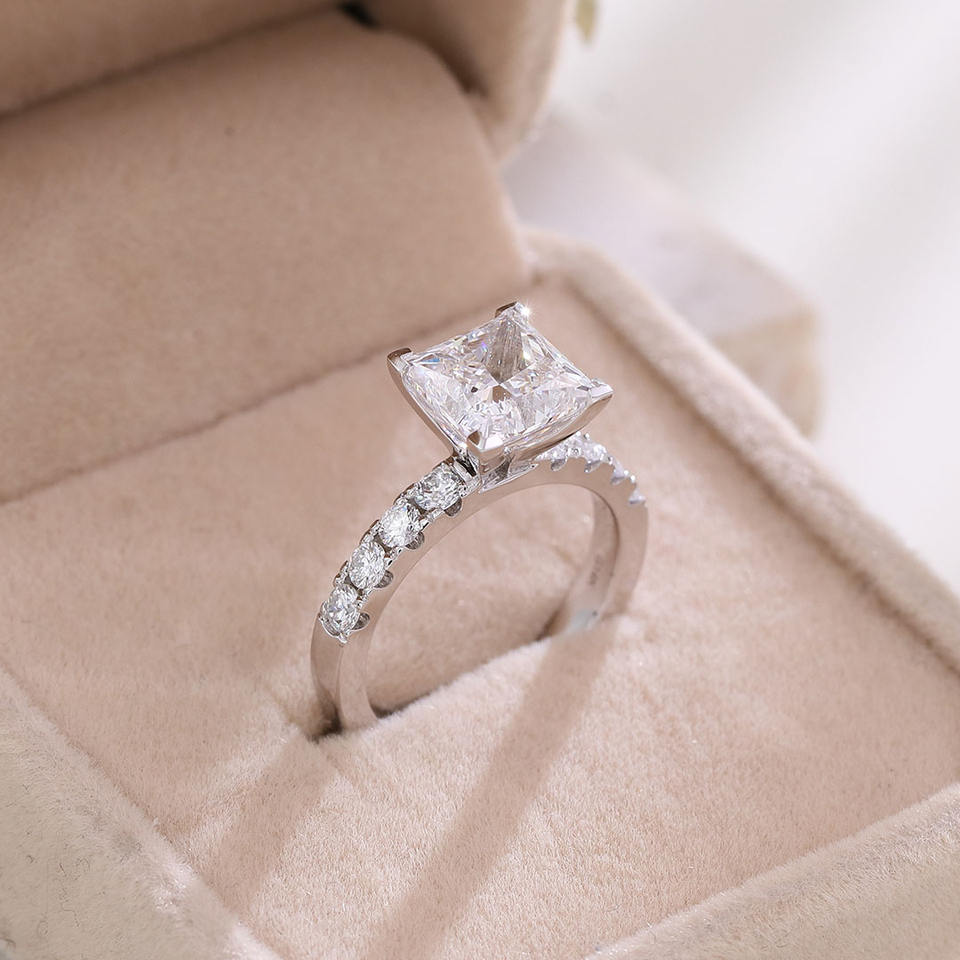18K WG IGI 3CT VVS1 Princess Cut Lab Grown Diamond Bague de fiançailles Solitaire avec tige de 2.5mm