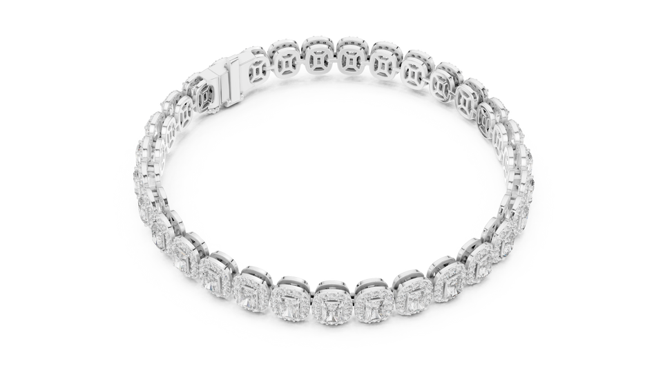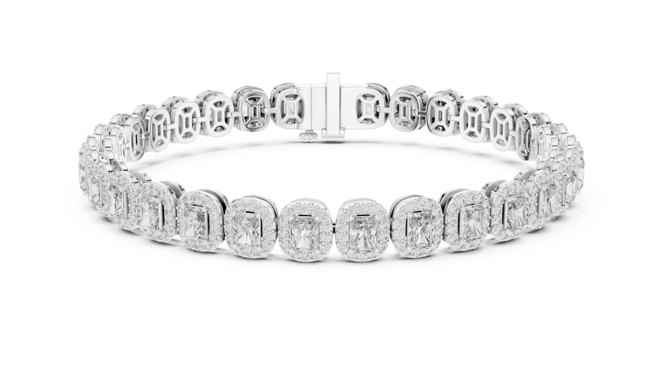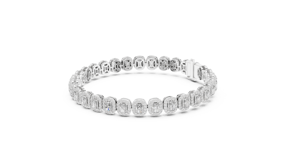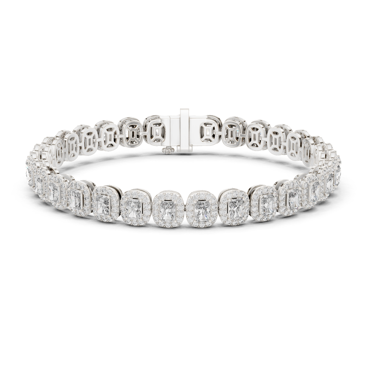 Bracelet tennis halo en or blanc 18 carats avec diamants de laboratoire et émeraude taillée, plaqué rhodium, bijoux de luxe