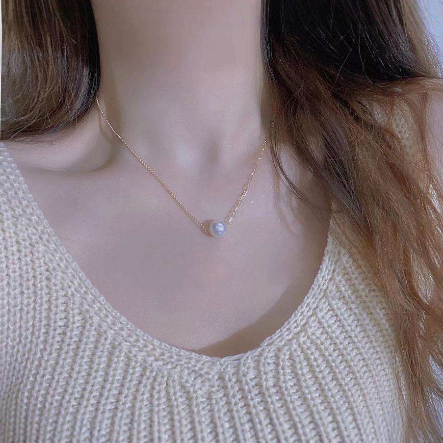 Wenchi 18K White Gold Pendant Necklace for Women New Natural Pearl Simple High-End Niche Collarbone Chain Spring Summer Gift