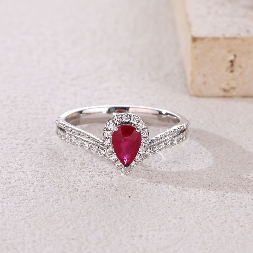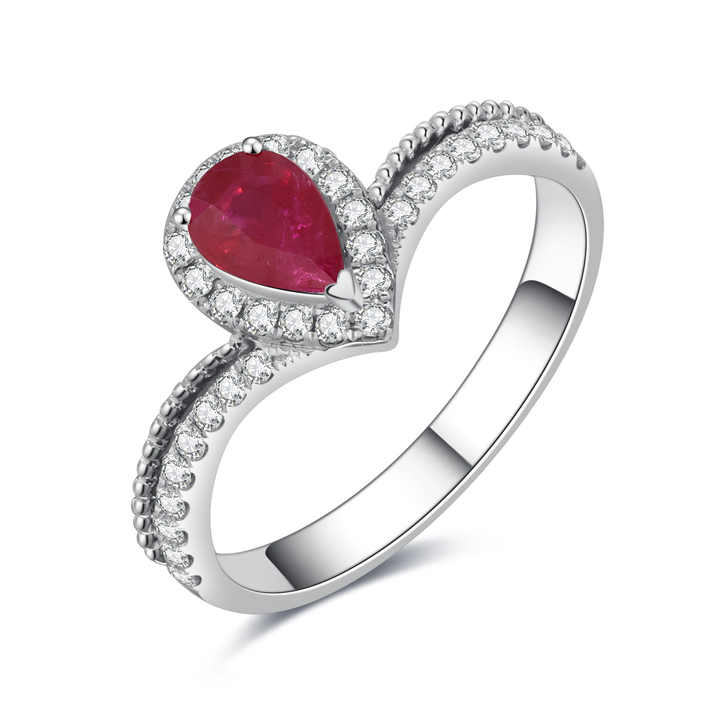 Bague de fiançailles classique en or blanc massif 18 carats avec rubis taille poire plaqué rhodium certifié pour mariage et anniversaire