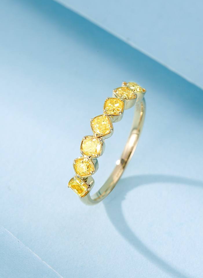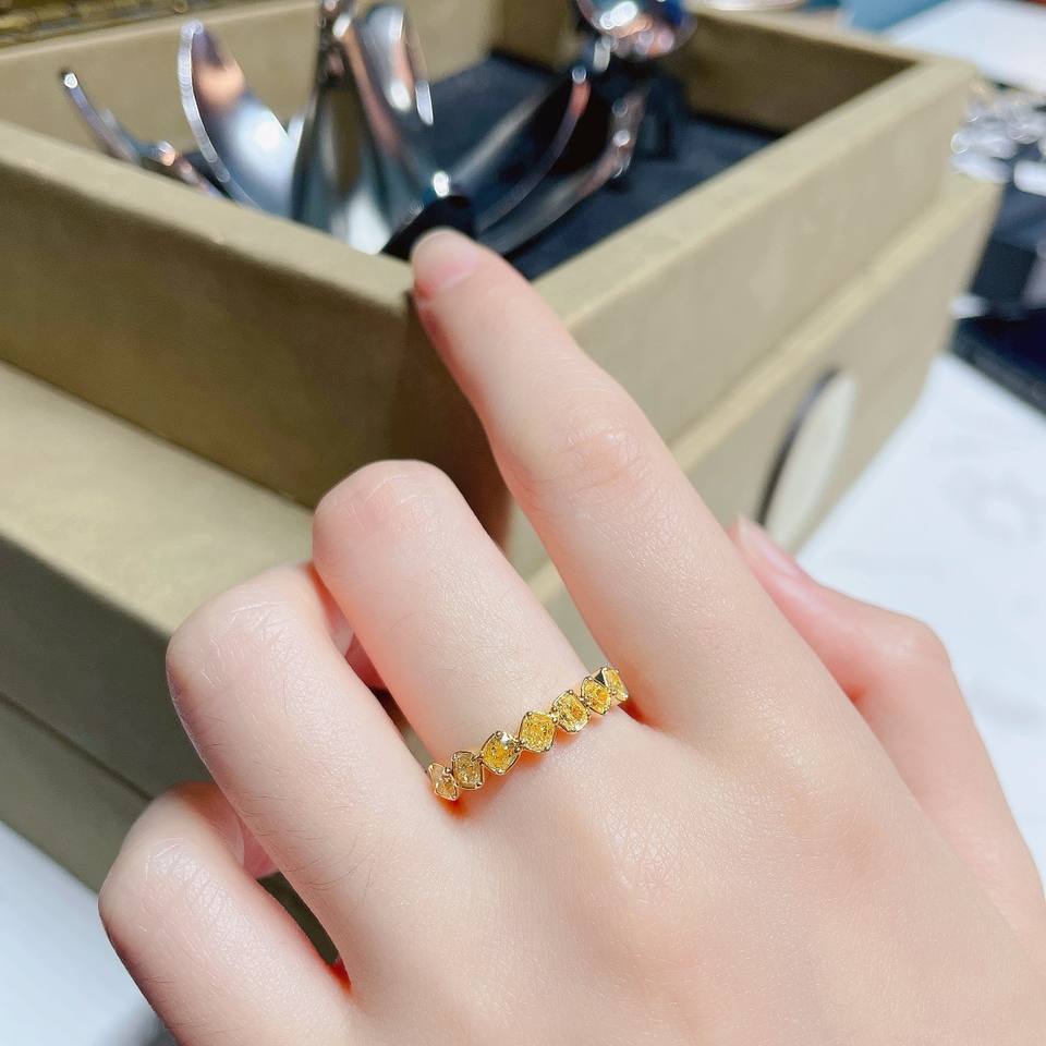Bague irrégulière en forme d'oreiller en diamant jaune 18 carats