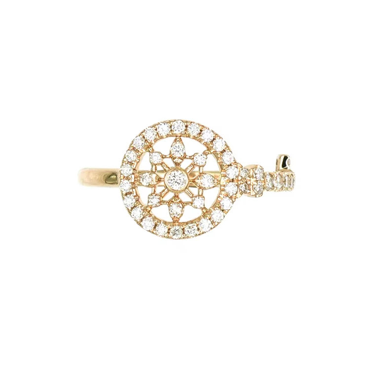 Bague ouverte en or jaune 18 carats sertie de diamants, motif de boussole, bijoux de luxe pour femmes