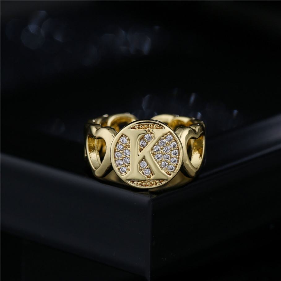 Bague en or jaune 18 carats plaqué avec zircon cubique 5A, style hip-hop élégant pour jeunes filles, bague de mariage en cuivre
