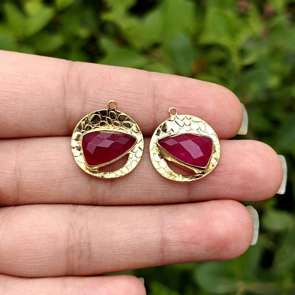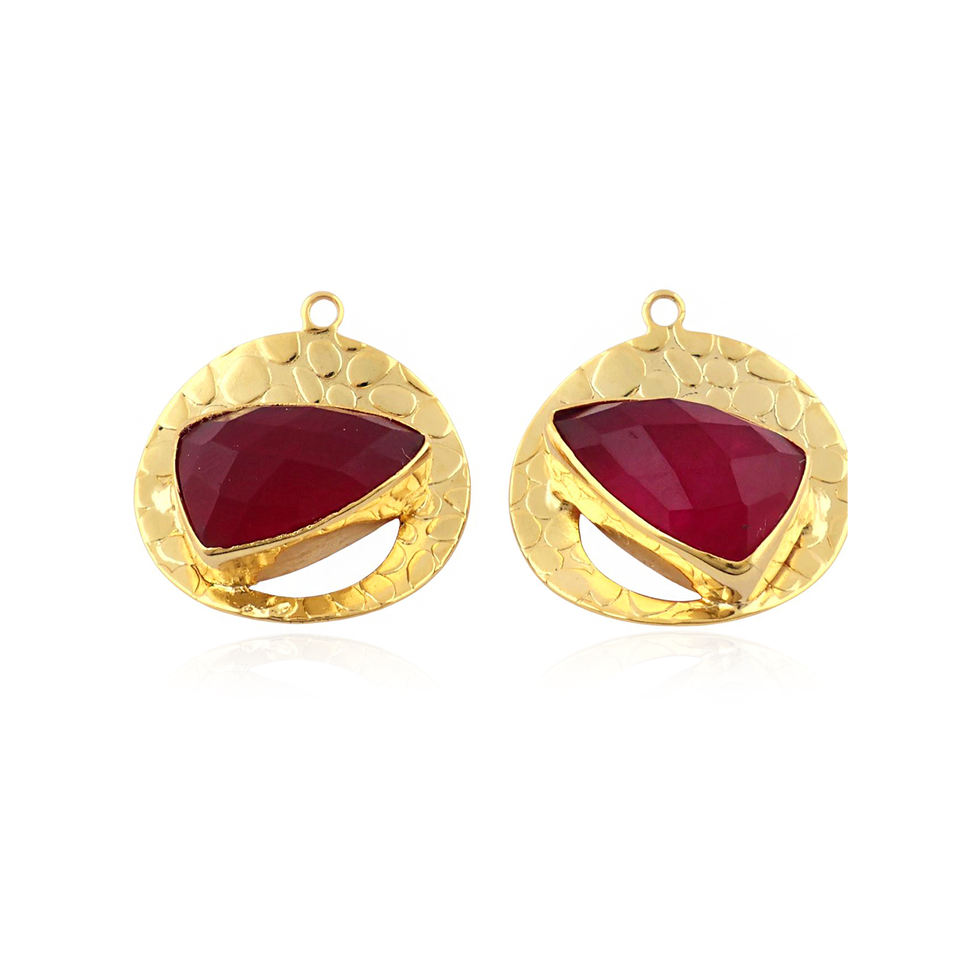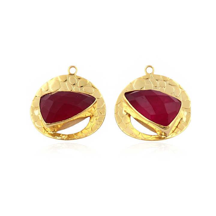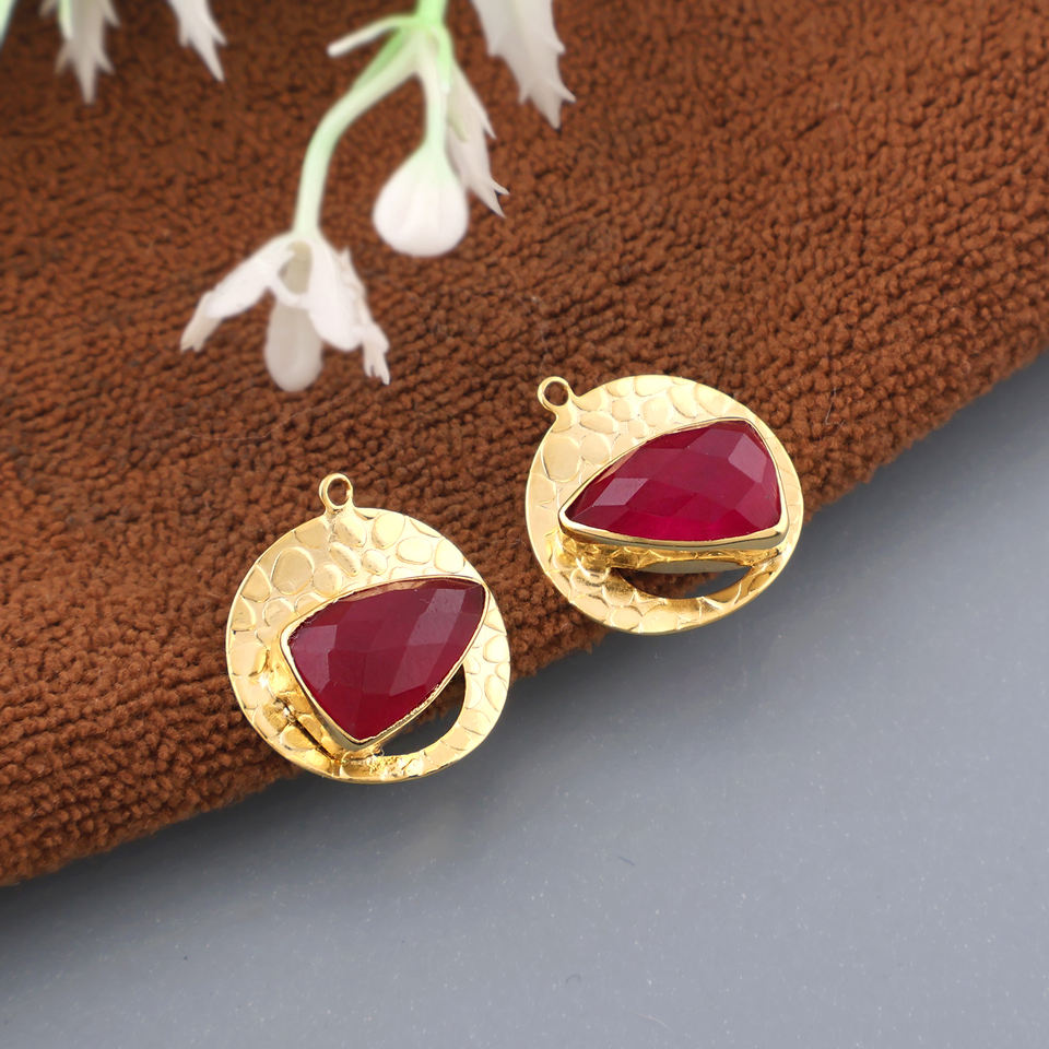 Composant de boucle d'oreille en laiton massif plaqué or 18 carats avec serti à collet pour pierre précieuse rubis et jade taille triligne, connecteur de bijoux moderne mini-breloque