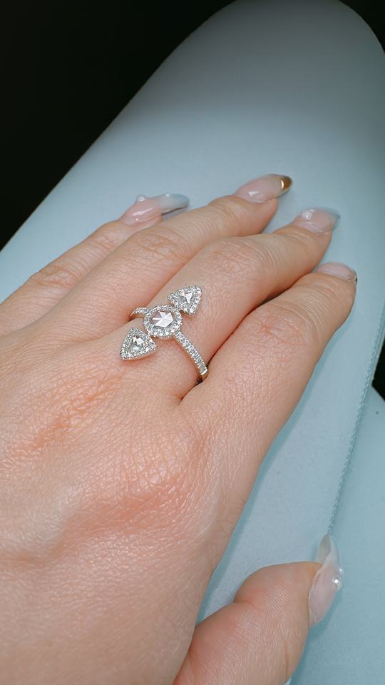 Bague de mariage en or massif 18 carats de haute qualité en forme de goutte bilatérale de luxe avec anneau rond