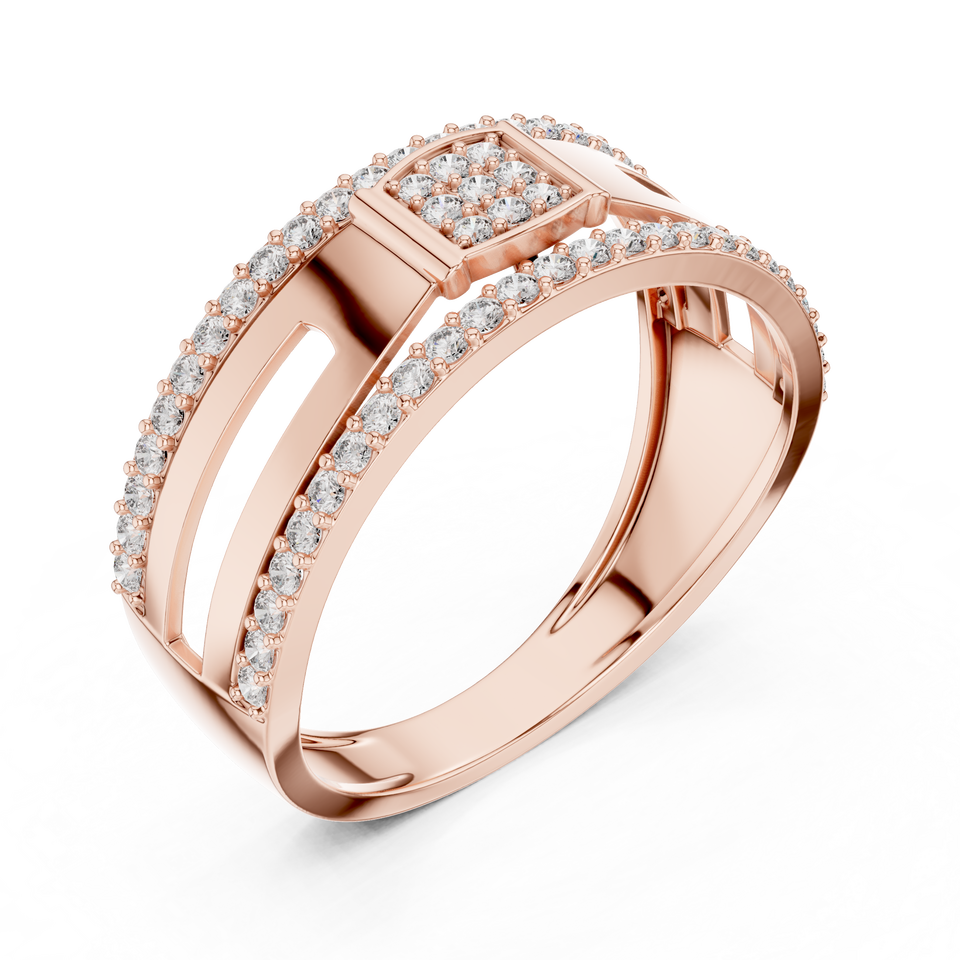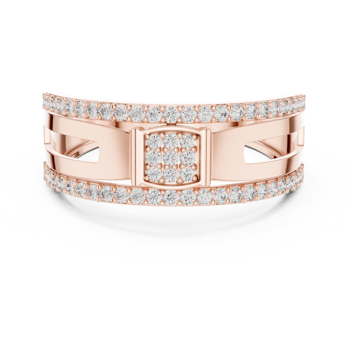 Bague Chevalière en Or Rose 18 carats Plaqué Rhodium avec Double Halo de Diamants de Laboratoire, pour Mariage/Fiançailles/Cadeau, Usage Quotidien/Bureau, Homme, Troisième Partie