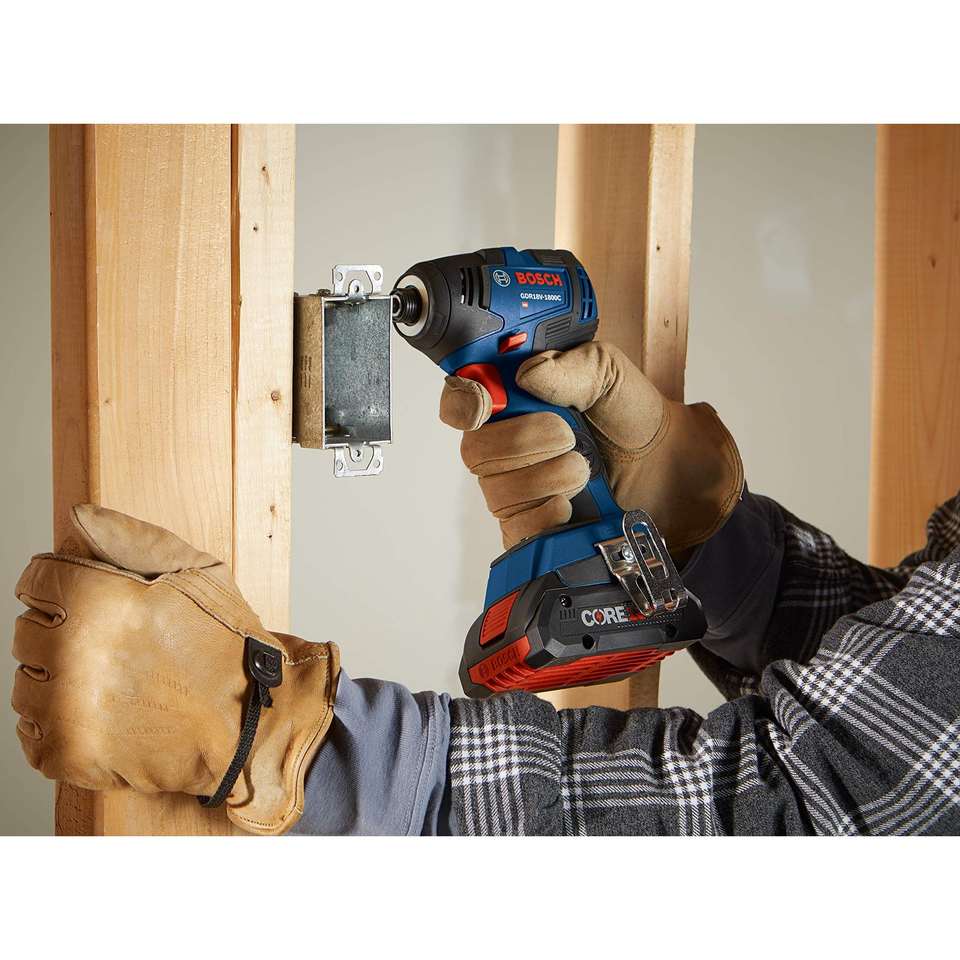 Kit de tournevis électrique sans balais 18V EC prêt à l'emploi, visseuse à chocs hexagonale 1/4 pouce, 2 batteries compactes 4,0 Ah, série CORE18V
