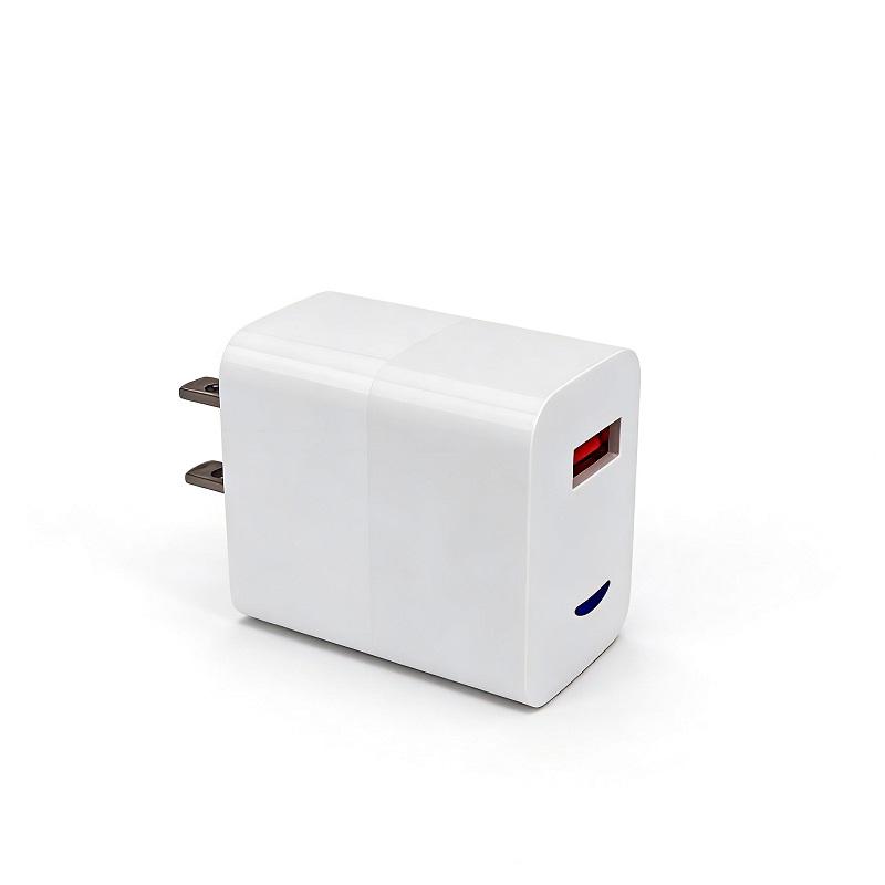 Chargeur mural USB rapide 18W avec indicateur LED, boîtier double texture (brillant + mat), prise fixe US/EU/UK pour iPhone Samsung personnalisé