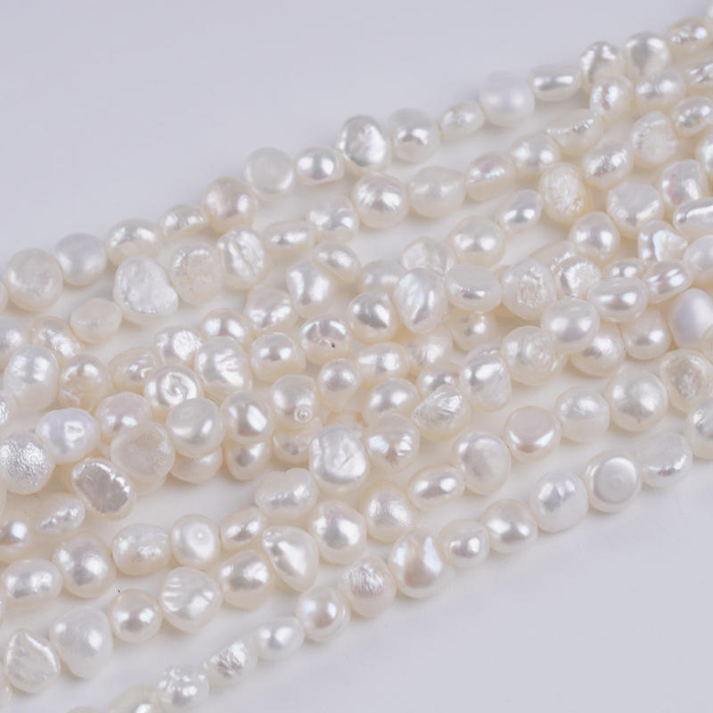 18cm 4-5mm Baroque White Freshwater Pearl Two Sided Light Side Hole Loose Pearls for DIY Necklace Bracelet Wholesale