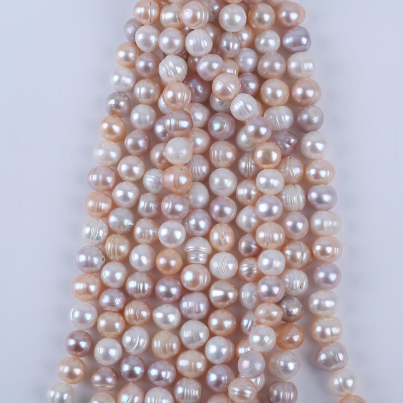 Perles d'eau douce naturelles de 18 cm, 9-10 mm, blanches, poudre, violettes, couleurs mélangées, pour collier DIY, perles en vrac assorties