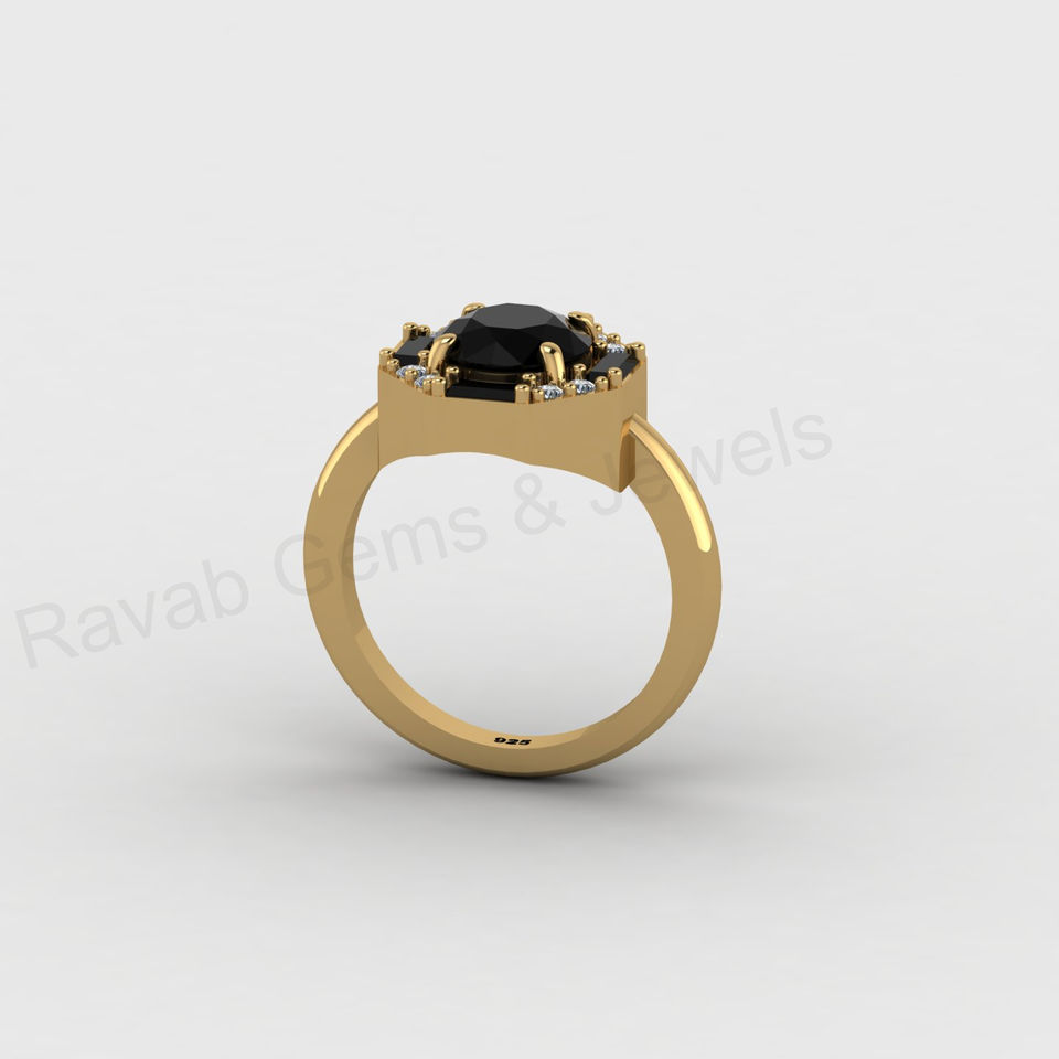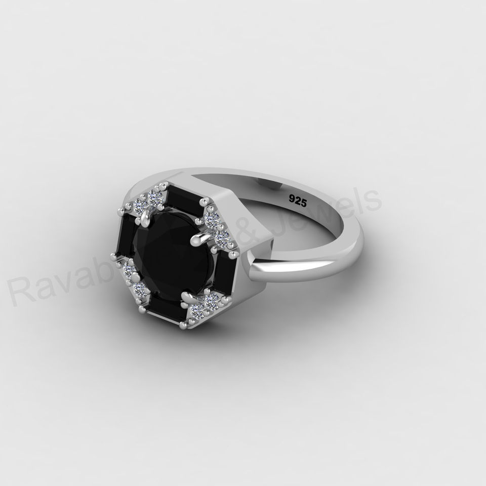 Product Name:Black Onyx With CZ Diamond Designer Hexagon Prong Ring