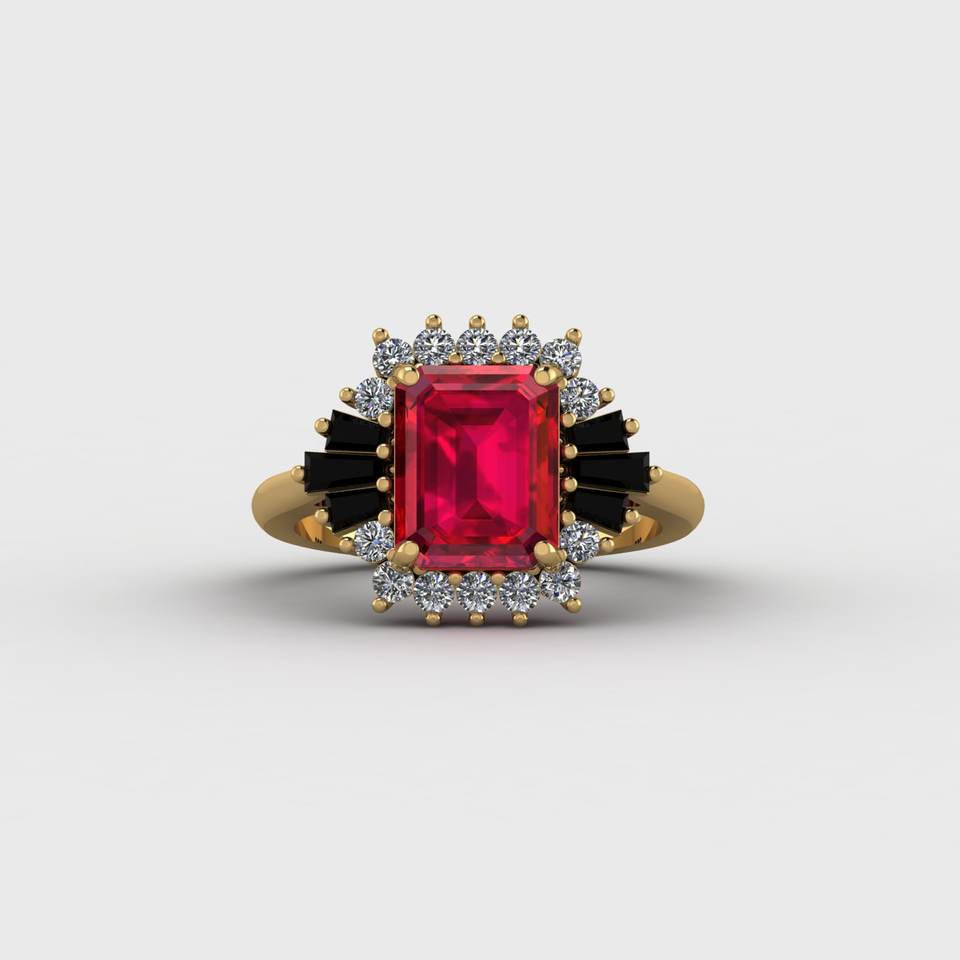 Product Name:Black Onyx & Ruby Quartz With CZ Diamond Designer Octagon Prong Ring