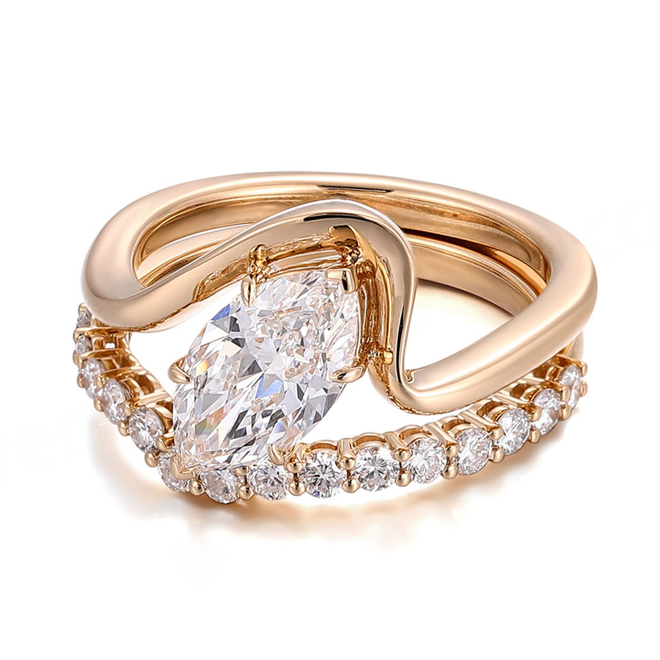 Bague de fiançailles et de mariage en or 18 carats avec un grand diamant de taille marquise créé en laboratoire, diamants de laboratoire certifiés IGI, diamant véritable cultivé en laboratoire