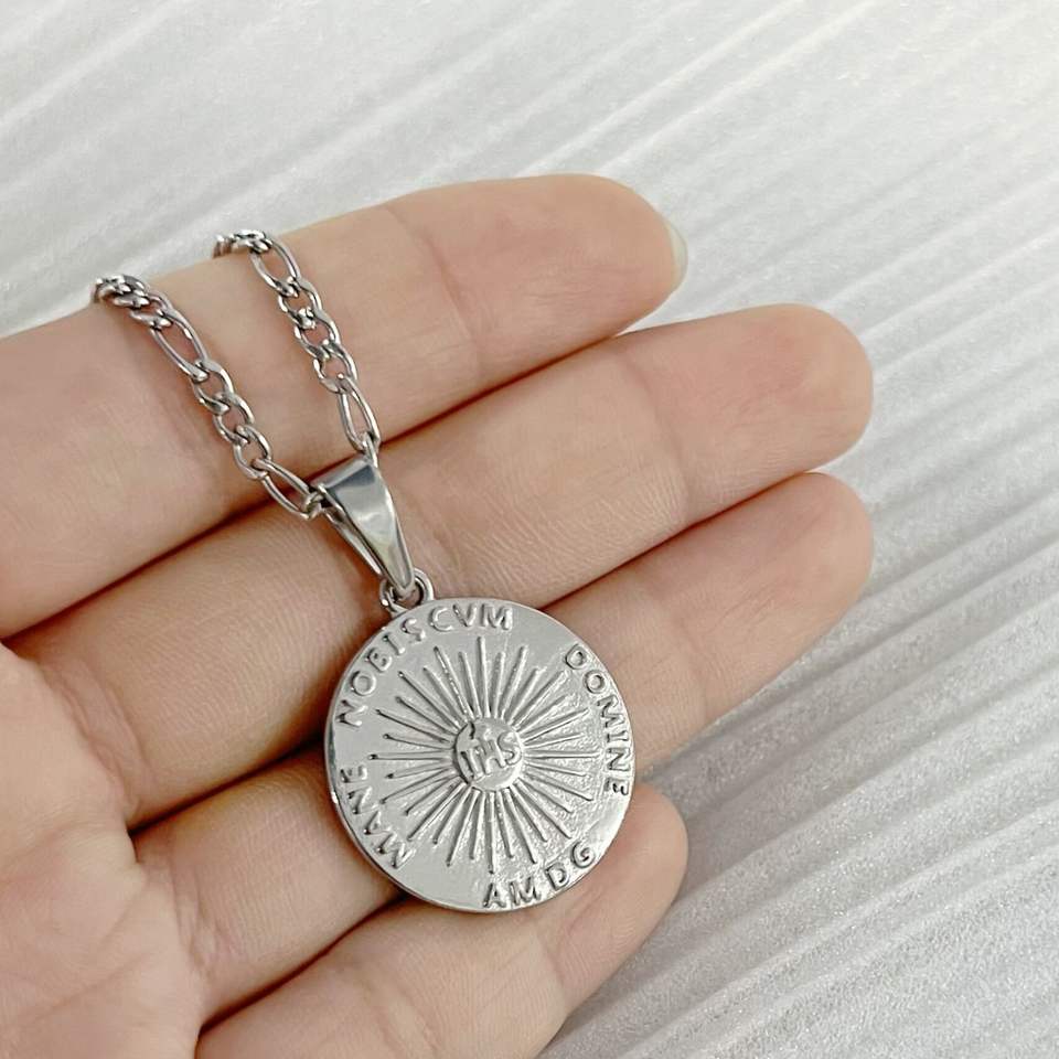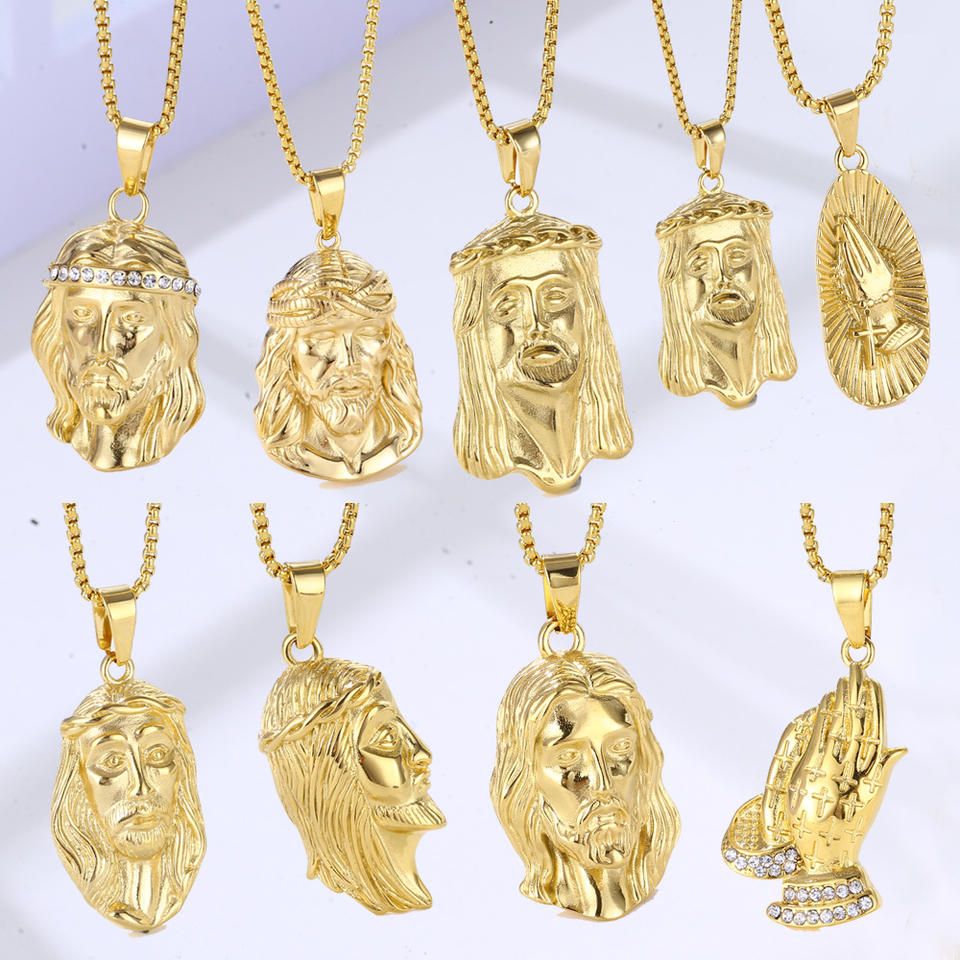Collier chrétien en acier inoxydable plaqué or 18 carats avec médaille de Jésus-Christ, pièce biblique, tête de Jésus, bijoux