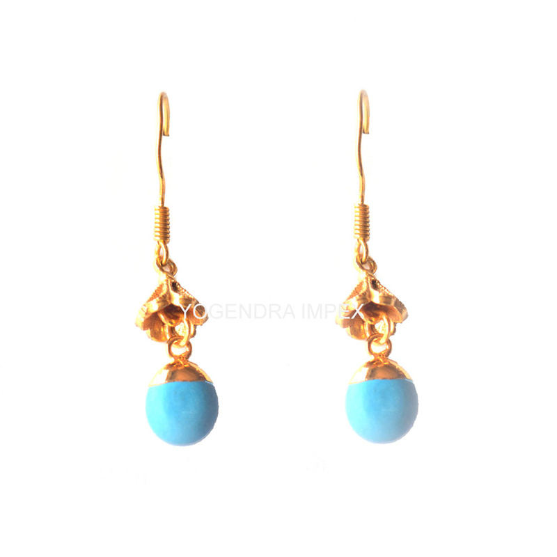 18k Plaqué Or Pierres Précieuses Turquoises Naturelles Drop & Boucles D'oreilles, Gros 925 Boucles d'oreilles en Argent Pour Les Fournisseurs