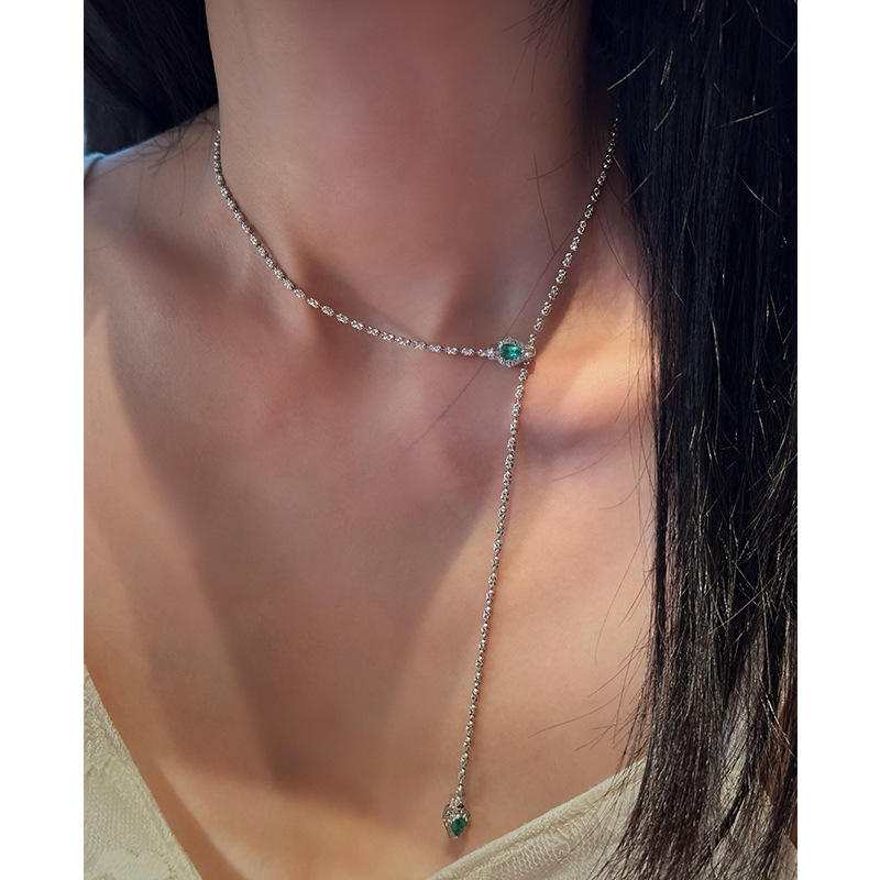 Collier chaîne délicat en acier inoxydable plaqué or 18 carats avec zircone bleue en forme de goutte d'eau