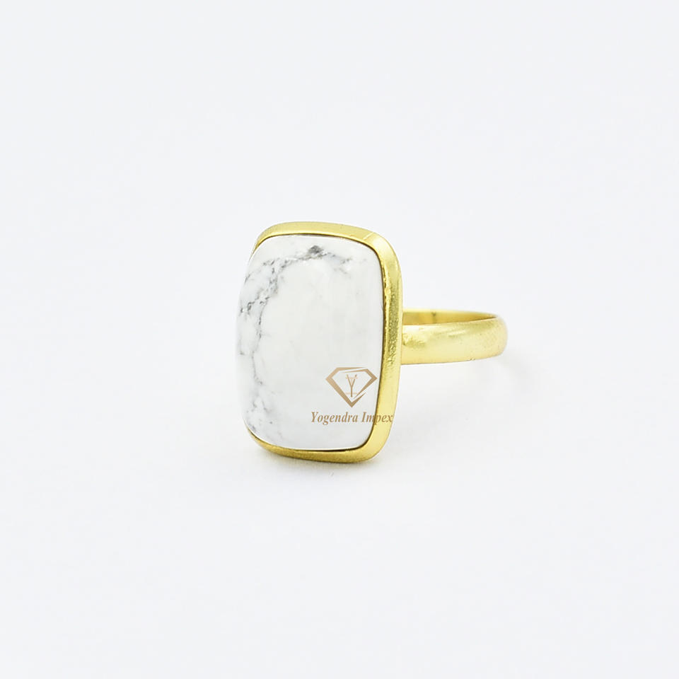 18K Micron Plaqué Or Howlite Gemstone 925 Sterling Lunette Anneau Style Classique À La Main Blanc Anneau Femmes De Haute Qualité