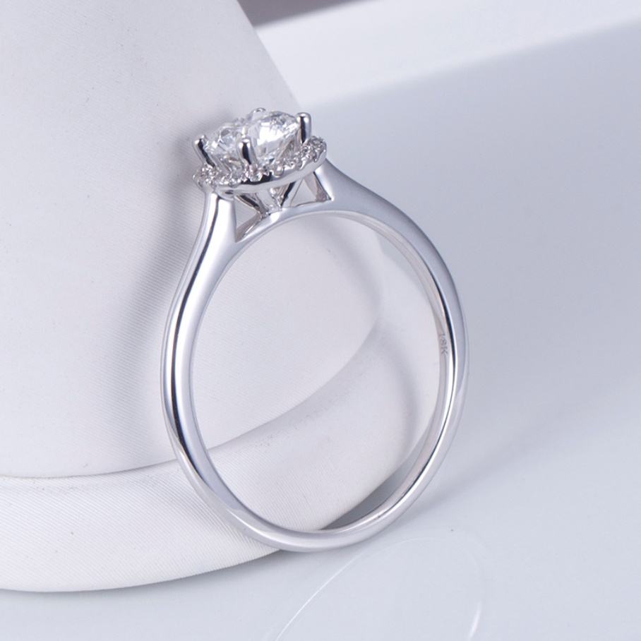 Bague de fiançailles en diamant véritable 18 carats, forme ronde, halo, bague de fiançailles en diamant de laboratoire, solitaire