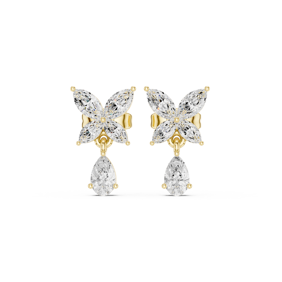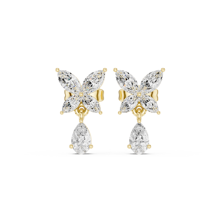 Boucles d'oreilles pendantes papillon en or jaune 18 carats avec diamants de laboratoire jaunes taille marquise et pendentif poire, bijoux de luxe pour femme