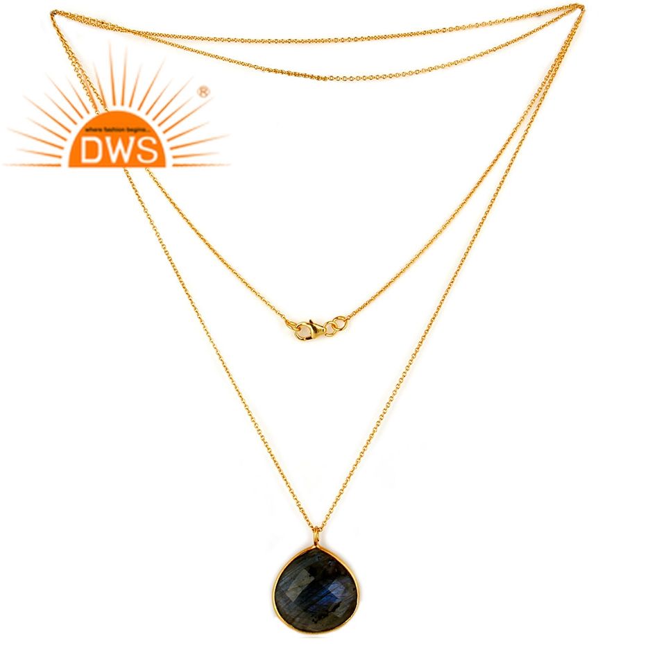 Pendentif Lariat plaqué or jaune 925 argent 18k, collier en forme de perle, Labradorite, vente en gros, livraison gratuite