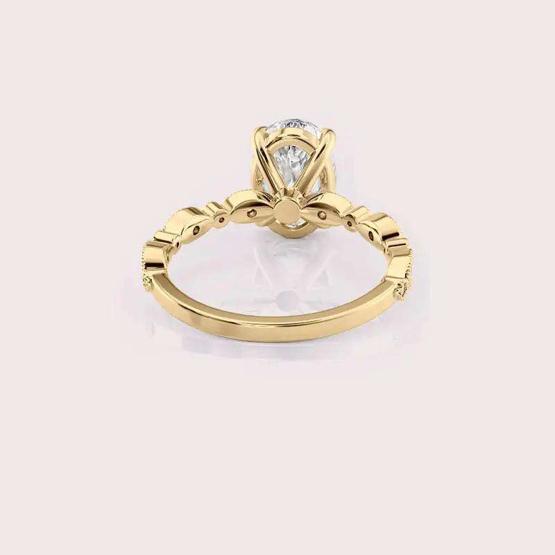 Bague vintage milgrain avec diamant de laboratoire taille ovale