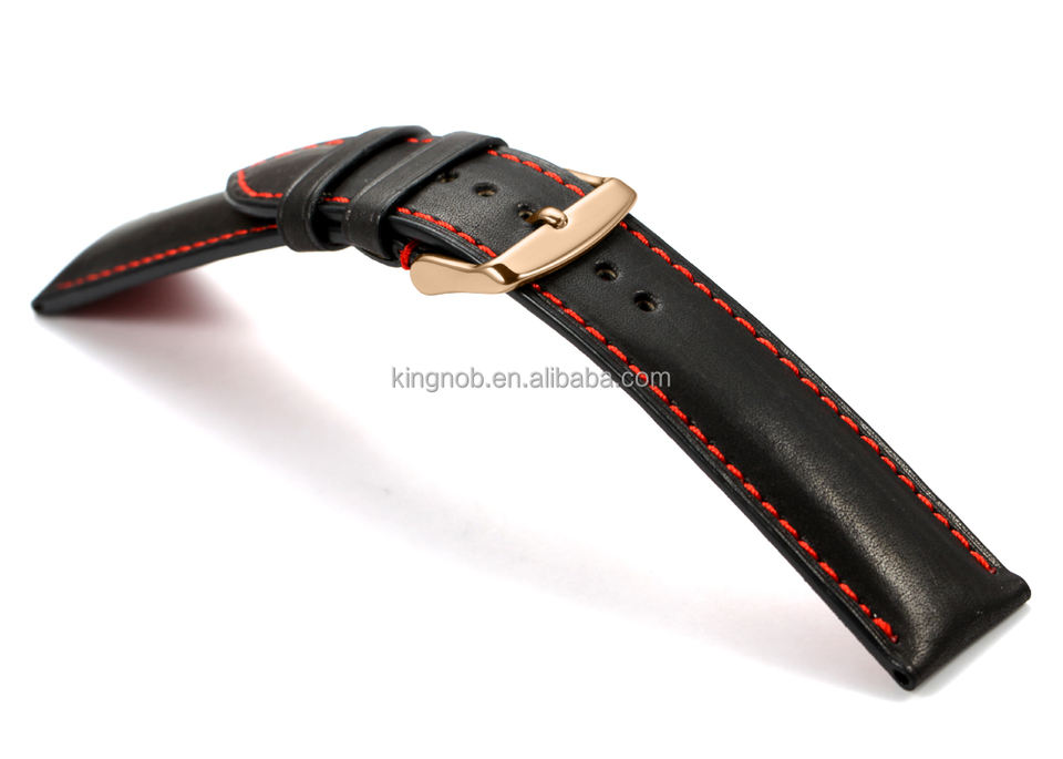 18mm Qualité Noir/Rouge Fil Pleine fleur En Cuir Peau de Veau Bande de Montre Variable 18mm à 24mm